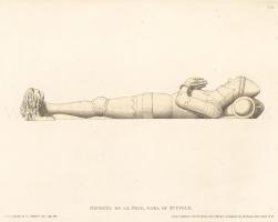 He was buried at Wingfield, and the Countess his wife, who was one of his executors, erected, in all probability, the monument there which commemorates him and herself. The effigies of de la Pole and his Countess are eminently beautiful specimens of female and military costume in the time of Henry the Fifth. The grand simplicity of the very plain suit of plate-armour which he wears, personihes the idea which we entertain of the appearance of the martial spectre so boldly imagined by Shakspeare for one of his finest dramas.