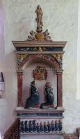 After 1656. St Edburga's Church, Leigh [Map]. Monument to Walter Devereux 5th Viscount Hereford (deceased) and Elizabeth Knightley Viscountess Hereford. Canopy suported on Ionic Capitals.