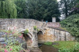 1590. The Packhorse, or Dr. Samuel Fleming's, bridge over the River Devon, at St Mary the Virgin Church, Bottesford, Leicestershire [Map]. Said ot have been commissioned by Samuel Fleming, Rector of Bottesford from 1581 to 1620, when he was unable to walk to the church as a consequence of a flooded River Devon.