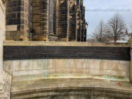 On 30th November 1924 the Northumberland Fusiliers and Royal Tank Regiment War Memorial, Newcastle upon Tyne [Map] was unveiled by the commanding officer of the Northumberland Fusiliers, Major General Sir Percival S. Wilson, and dedicated by the Rev Canon T E Crawhall, the memorial had been raised by public subscription at a cost of £3,000. The figure which represents St George slaying the dragon was designed by John W M Reid who at the time was Master of Sculpture at the nearby University of Durham's Armstrong College (now Newcastle University). The intricate detail found in the representation of St George's armour was researched by Reid during a visit to see examples of the period in the Tower of London. The sculptor of the figure was William Currie and the architects were Newcastle-based Cackett and Burns Dick. The memorial's figure is made from bronze, supported by a pedestal and screen of Portland Stone. The memorial commemorates the service of both the 6th (Territorial/City) Northumberland Fusiliers and the 43rd and 49th battalions of the Royal Tank Regiment. The latter was added after World War Two to mark an amalgamation in 1938 of the Northumberland Fusiliers with the Royal Tank Regiment. In 1938 the Fusiliers had changed from an infantry to an armoured role.