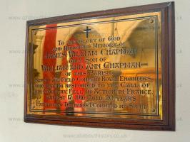 Memorial at St Michael and All Angels Church, Brimington [Map] to James William Chapman of the 73rd Field Company Royal Engineers who fell in action on 17th August 1916 aged twenty during the Battle of the Somme. He is commemorated on Thiepval Memorial.