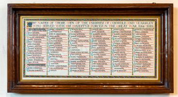 After 1945. Those who served in World War II at St Michael's Church, Coxwold, North Yorkshire [Map], and the Military Medal awarded to Corporal John Bakey of the Royal Engineers for bravery in the field in 1914.