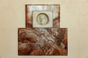 After 1926. St Michael's Church, Coxwold, North Yorkshire [Map]. Memorial to Henry Herbert Wombwell 5th Baronet (age 85) commissioned by his wife Myrtle Mabel Muriel Mostyn (age 56).