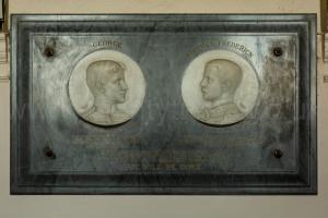 1901. Monument at St Michael's Church, Coxwold, North Yorkshire [Map] to George Wombwell and Stephen Frederick Wombwell (age 34), only sons of George Orby Wombwell 4th Baronet (age 68), who both died on active service. Sculpted by Emil Fuchs (age 34).