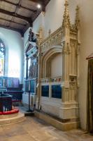 After 1802. Imitation Gothic chantry-style monument to Henry Belasyse 2nd Earl Fauconberg (age 59) and his wife Charlotte Lamb Countess Fauconberg on south wall of Chancel at St Michael's Church, Coxwold, North Yorkshire [Map].