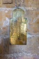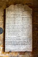 Porch of St Michael's Church, Coxwold, North Yorkshire [Map]. Memorial to Elizabeth Faucon.