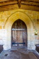 1924. The Porch of St Michael's Church, Coxwold, North Yorkshire [Map] was restored in memory of George Orby Wombwell 4th Baronet and Julia Sarah Alice Child-Villiers Lady Wombwell.