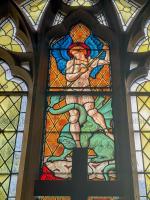 St Michael's Church, Rocester [Map]. East Window, and two windows in the chancel, by William Frend De Morgan restored 1991. One of the windows signed "DM".