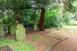 Around 1884. Graves of servants of Brereton Hall, Cheshire [Map] in the churchyard of St Oswald's Church, Brereton [Map].