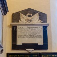 23rd August 1754. Memorial at St Peter's Church, Tawstock [Map] to Mary Edwards Lady Wrey. A Memorial to MARY Lady WREY The only Surviving Child of J. EDWARDS Esqr of Highgate: Who Left us August 23d 1751 (Her Virtues not half Counted Her Glass not yet half run,) To deplore Her Loss This tributary Stone, was, in 1754 placed Here, The Day Three Years from Her departure, near Five from Her Marriage, By Her Grateful Husband BOURCHIER WREY (age 40)