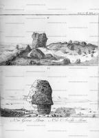 Archaeologia Volume 6 Section XIII. Plate XVII. N° II. is a view of a stone called Gorse Stone [Map], with Cat Stone at a distance marked I. This name is undoubtedly derived from a British word gorsed dau (setting aloft). Doctor Borlace says, in his Antiquities of Cornwall, that the Druids had places of elevation "called gorsed dau; in some places they were made of earth, and sometimes they were upon high rocks, from whence they used to pronounce their decrees." Now no place seems to be better calculated for that purpose, or for their inaugurations, than these stones; the other, which is the largest of the three, is called Heart Stone [Map], and measures eighty-three feet in circumference.