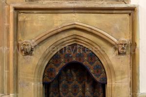 1495. Brass to Peter Gerrard. Beneath the floor is the family vault. This has not been used since the Reformation..