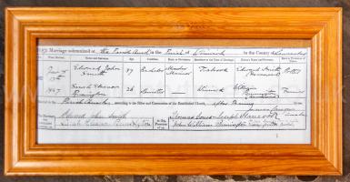 13th January 1887. Marriage Certificate of Edward John Smith and Sarah Eleanor Pennington who were married at St Oswald's Church, Winwick [Map]. He, twenty-five years later, was Captain of the Titanic who went down with his ship.