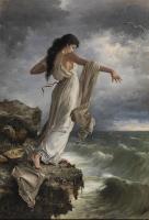 1881. Miquel Carbonell Selva (age 26). "The Death of Sappho". The painting depicts a myth about Sappho’s death, that she fell off of a cliff and drowned to death after having her heart broken by a young sailor named Phaon.