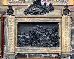 After 1858. South Aisle, Edinburgh Cathedral [Map]. Memorial to the 93rd Sutherland Highlanders who died during the Indian Mutiny of 1857-58 sculpted by William Brodie (age 42).